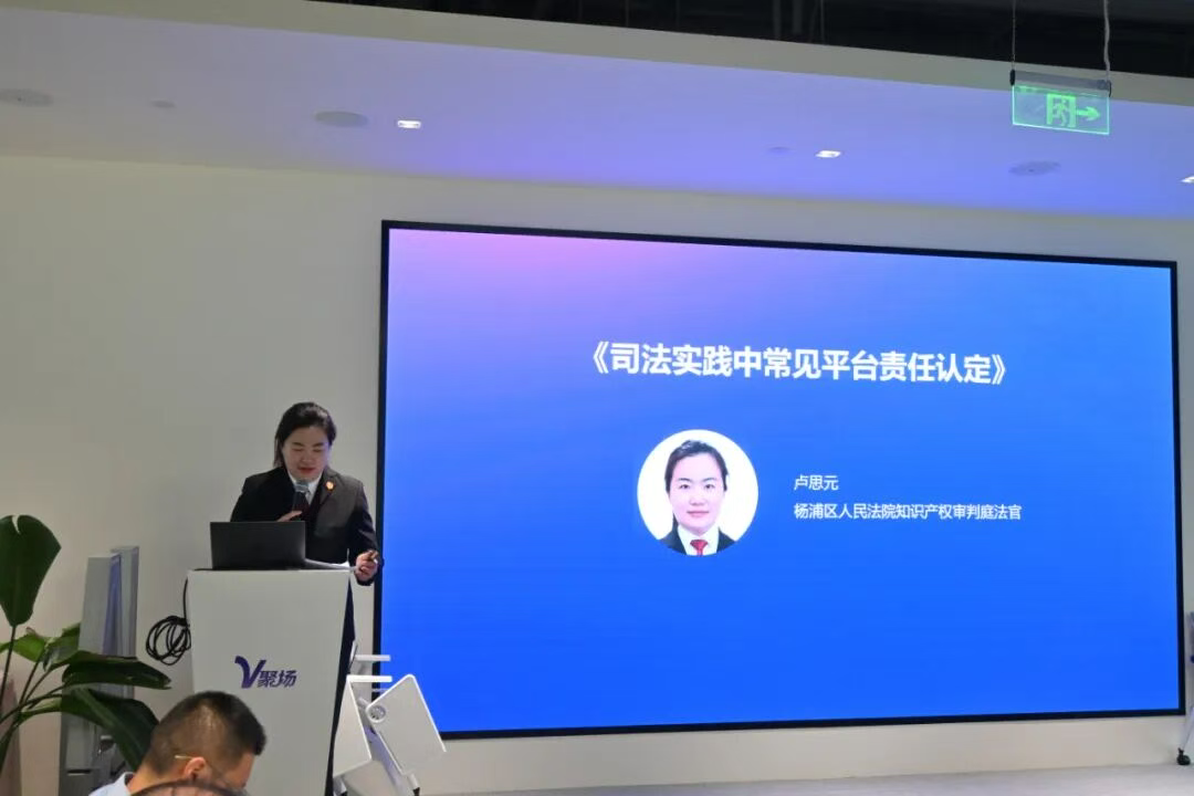 在嘉宾演讲环节,杨浦区人民法院知识产权审判庭法官卢思元以“司法实践中常见平台责任认定”为主题,详细介绍了平台侵权赔偿责任的划分问题。她表示,司法审查常从两个角度入手:一是平台是否尽到与经营模式、经营行为相适当的管理责任,二是平台内侵权信息是否处于明显、易发现的状态。卢思元强调,常见审查内容有以下几个方面:平台需匹配自身管理能力履行义务,避免因设置高侵权风险栏目、用户信息管理缺漏等失责;在“通知-删除”规则下,需及时采取措施并明确审核边界,应对反复侵权;依据红旗规则,对知名内容或者被反复投诉的侵权内容履行主动审查义务;平台对用户内容进行编辑、推荐、设置榜单等情形则需承担更高注意义务。