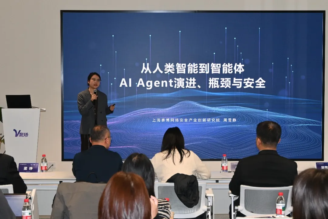 在嘉宾分享环节,赛博研究院智库总监周雪静围绕AI智能体展开了深度分享,清晰界定了“智能+形态”的核心内涵,系统梳理了智能体从规则驱动阶段向大语言模型赋能阶段的演进脉络,并构建了数字型、物理型等多维度的形态分类体系。周雪静强调,尽管智能体技术已在多个领域实现落地,但目前多数Agent应用仍停留在对大语言模型能力的封装或简单延伸层面,与真正意义上的通用智能体协同存在显著差距。当前行业仍面临三大核心挑战:一是实现从单一智能体向多智能体协同的跨越,以破解复杂任务处理的瓶颈;二是推动应用场景从单一场景/单一环节向核心业务流程及全产业链条深度渗透,充分释放技术生产力;三是智能体发展与安全治理的动态平衡建设仍需进一步完善。