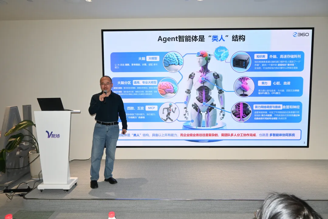 360数智化集团产品总监廖百成在“智能体的发展趋势和实践路径”主题分享中指出,人工智能产业正处于模型与智能体双重进化的关键阶段。随着模型推理能力持续提升、开源生态推动成本下行、工具矩阵加速爆发等多重因素叠加,AI应用落地的核心载体已转向智能体。作为具备类人化架构的智能系统,智能体拥有任务分解规划、记忆迭代、工具调用及分工协作四大核心能力,可独立完成全流程复杂任务的闭环执行。此外,廖百成还系统拆解了智能体的五大发展层级,即“聊天型智能体”“程式型智能体”“推理型智能体”“多智能体协同”及“ACA智能体”,并着重强调,“多智能体协作”与“自进化智能体”,是智能体未来发展的核心方向。