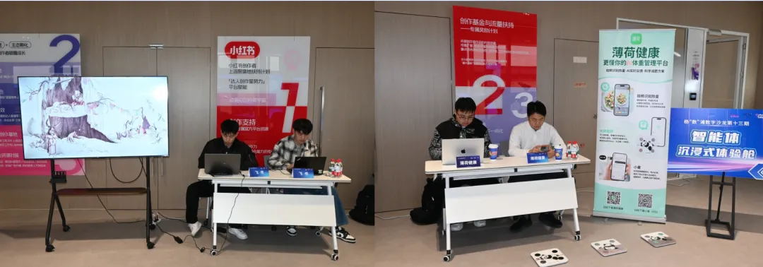 为助力与会人员更直观地了解并体验智能体技术,本次沙龙特别增设“智能体沉浸式体验舱”专区。活动现场,飞书、薄荷健康等企业布设了互动体验设备,参会者通过亲身体验,深度感受智能办公、健康管理等典型应用场景的赋能价值,直观领略智能体技术驱动下的高效协同与便捷服务。