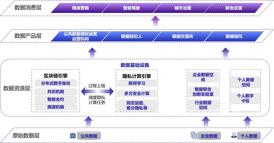 因此,需要从最大限度释放数据价值目标导向出发,构建以数据的高效共享、可信流通目标的数据基础设施,为新兴数据技术集成使用提供统一载体,在满足合规要求的前提下为数字经济提供源头活水。