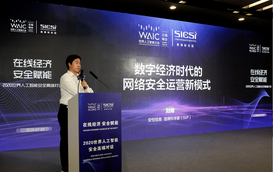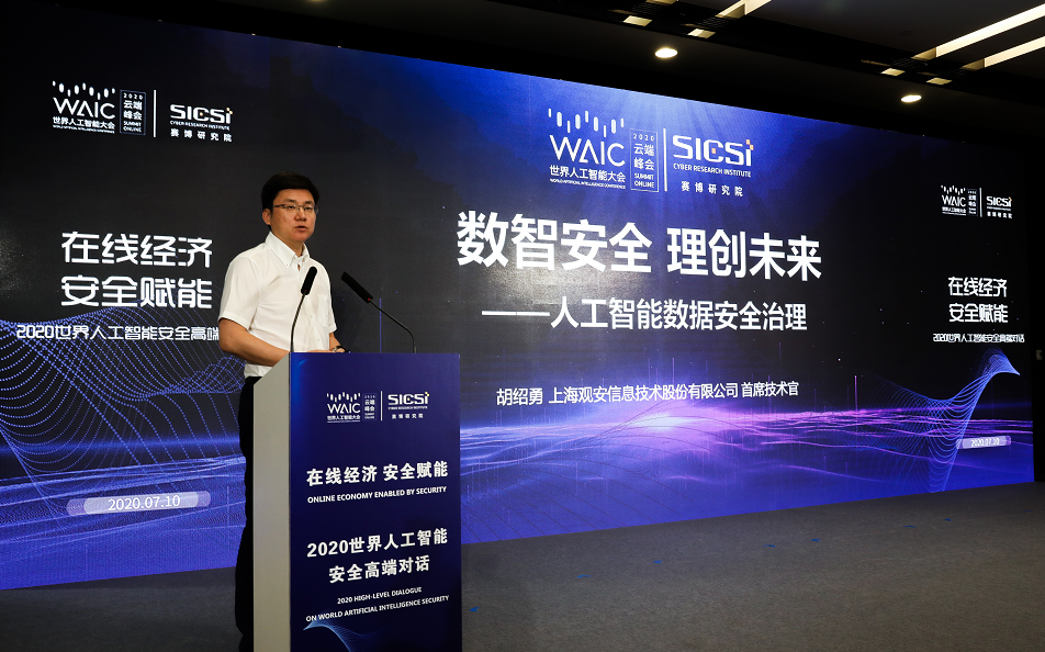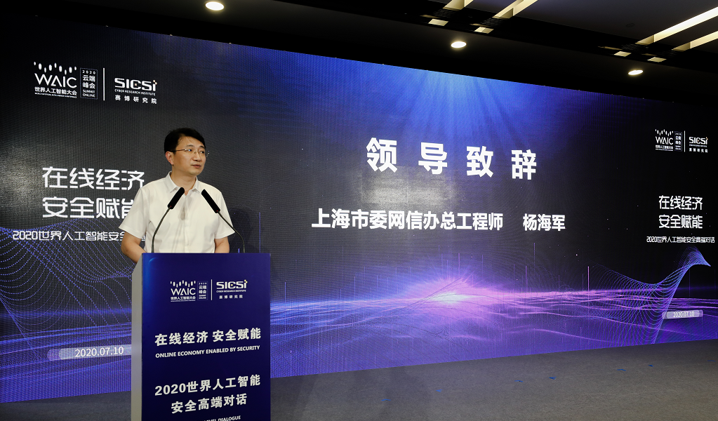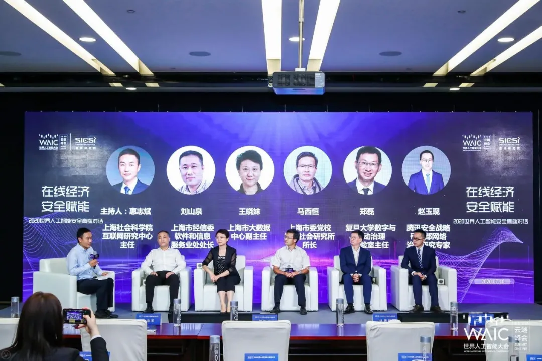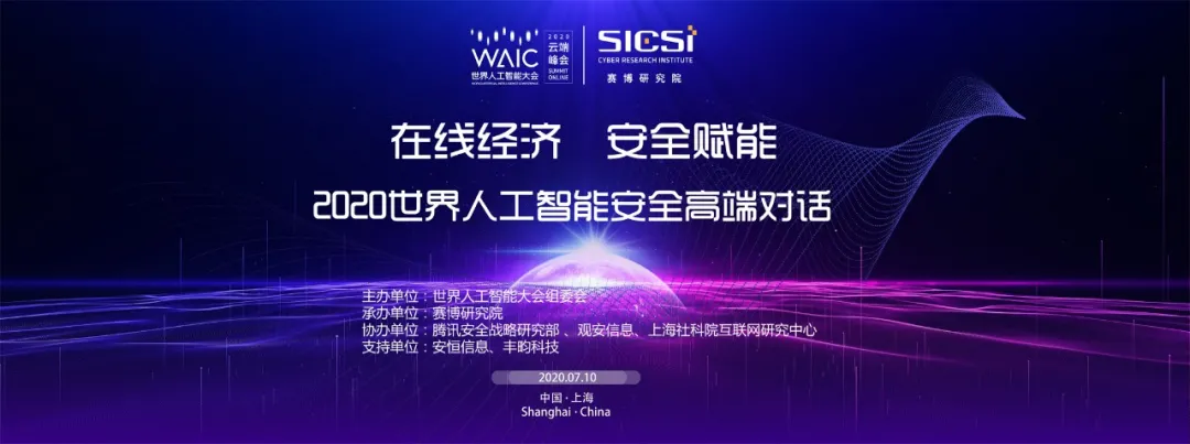 7月10日,2020世界人工智能安全高端对话在上海世博中心成功举办。在面对常态化疫情防控的特殊时期,此次高端对话以线上线下、视频直播相结合的方式举行。作为2020年世界人工智能大会主题论坛,安全高端对话以“在线经济,安全赋能”为主题,由世界人工智能大会组委会主办,赛博研究院承办,腾讯安全战略研究部、上海观安信息技术股份有限公司、上海社会科学院互联网研究中心协办,杭州安恒信息技术股份有限公司、丰畇智能科技(上海)有限公司等支持。